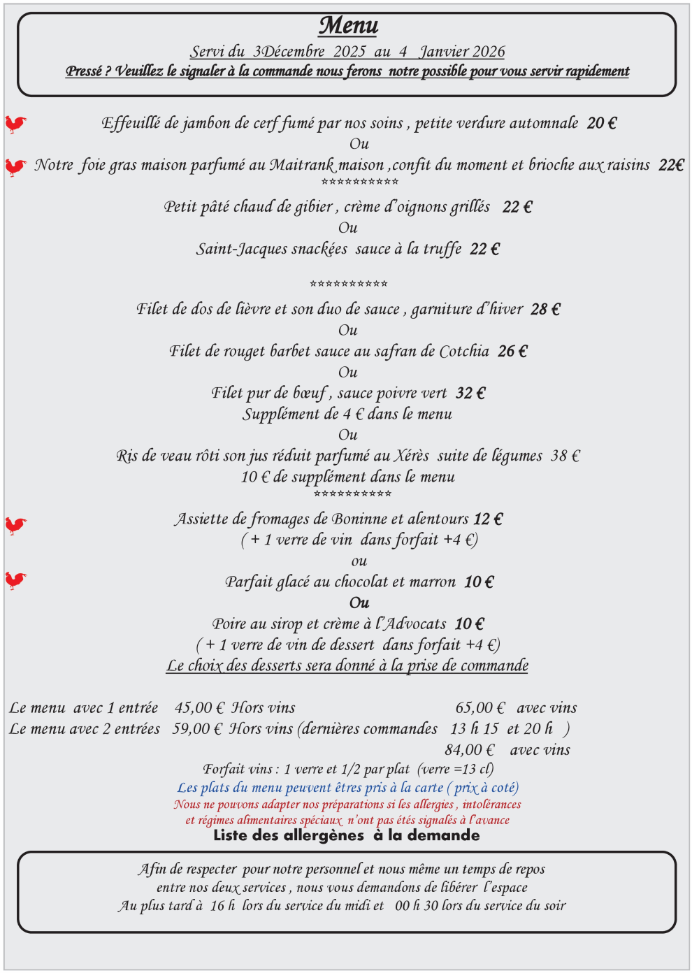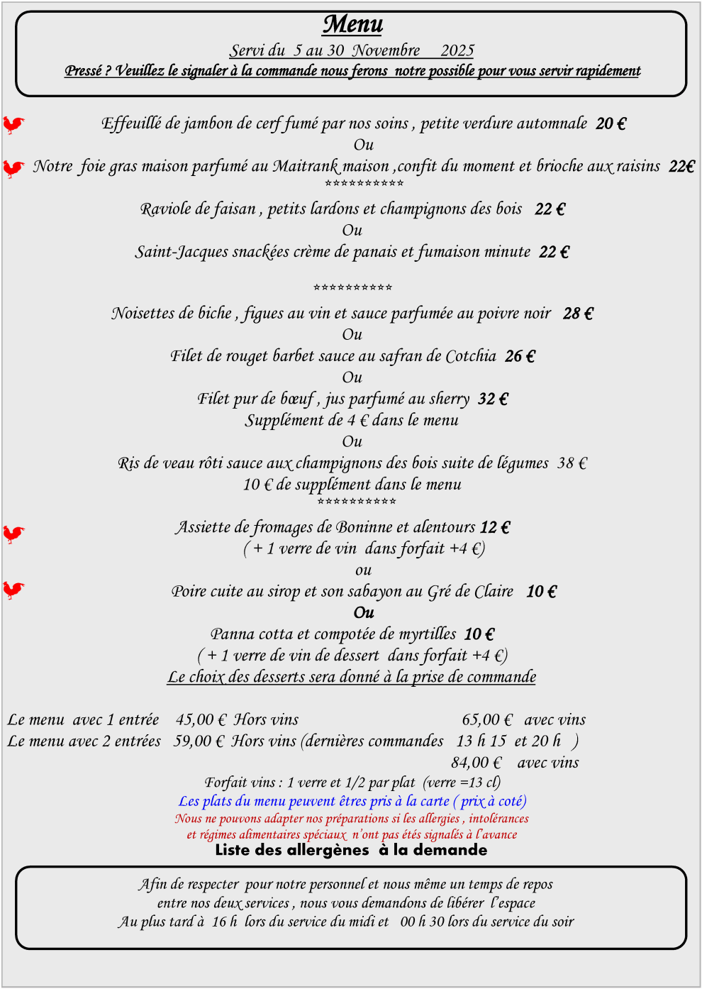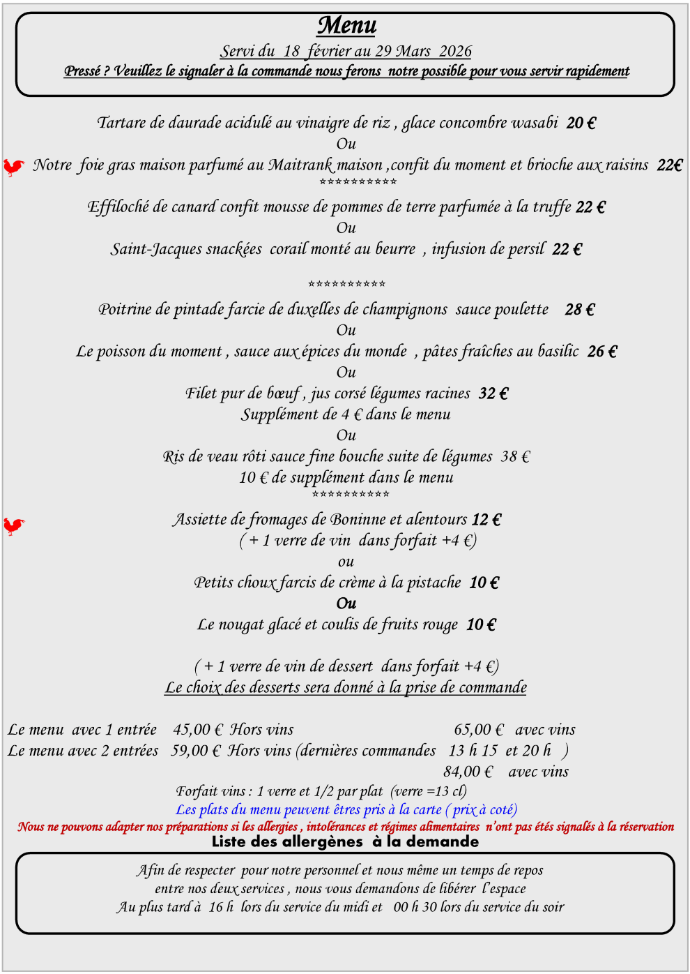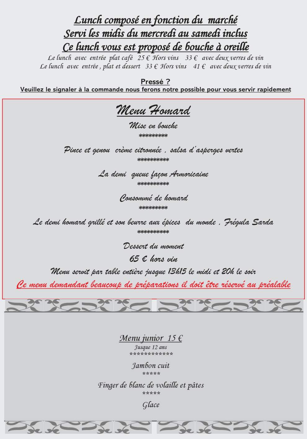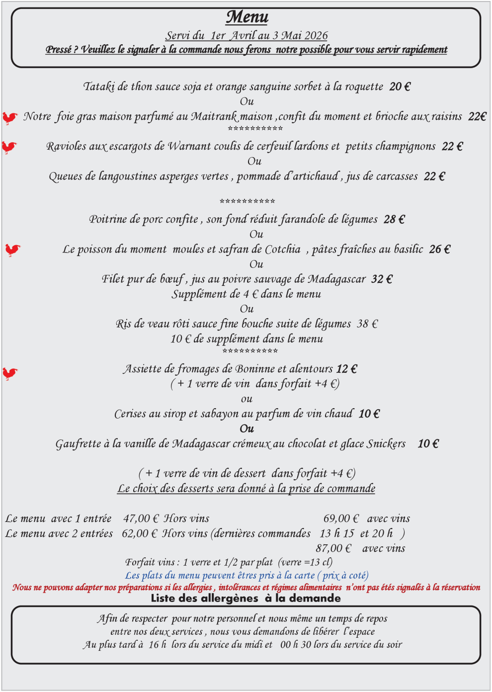 – Menus & Carte –