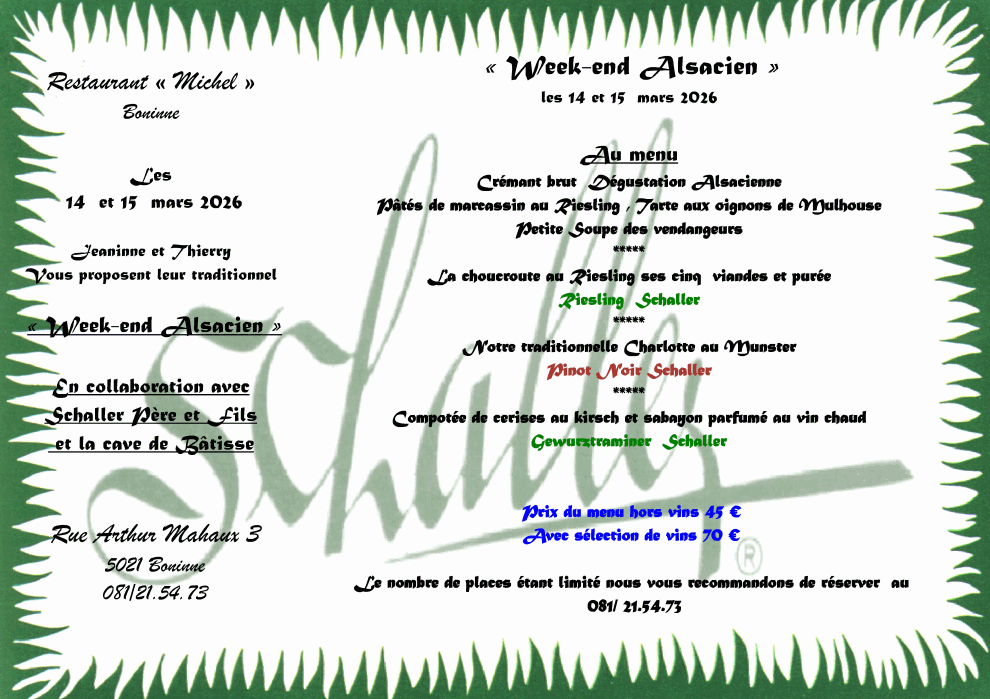 Les réservations de week-end sont uniquement prises par téléphone au 081.21.54.73